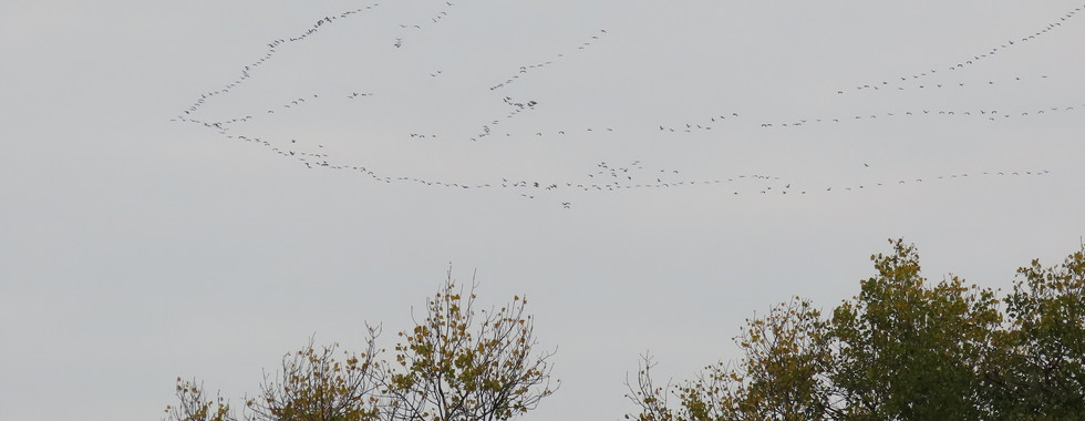 In questo periodo dell’anno è possibile vedere grandi e chiassosi stormi di grossi uccelli che volano in formazione a V: le gru cenerine in migrazione.